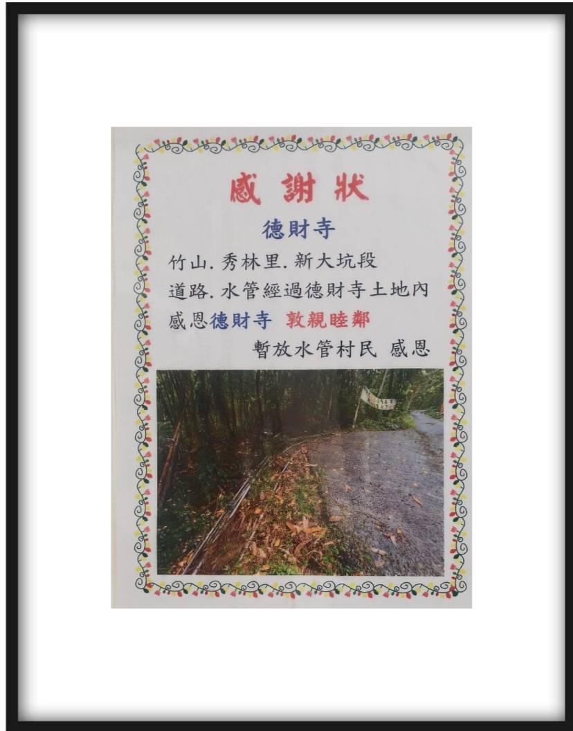德財寺籌建處:南投縣竹山鎮瑞山巷156號;TEL : 049-2630016、0905-120-815