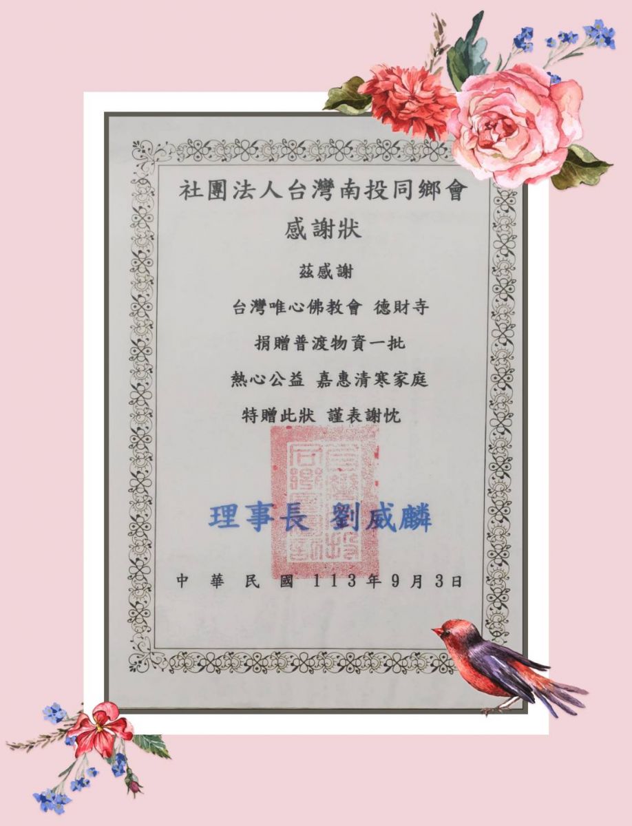 > 關於德財寺 > 慈善布施 有需要者可聯繫德財寺 親領